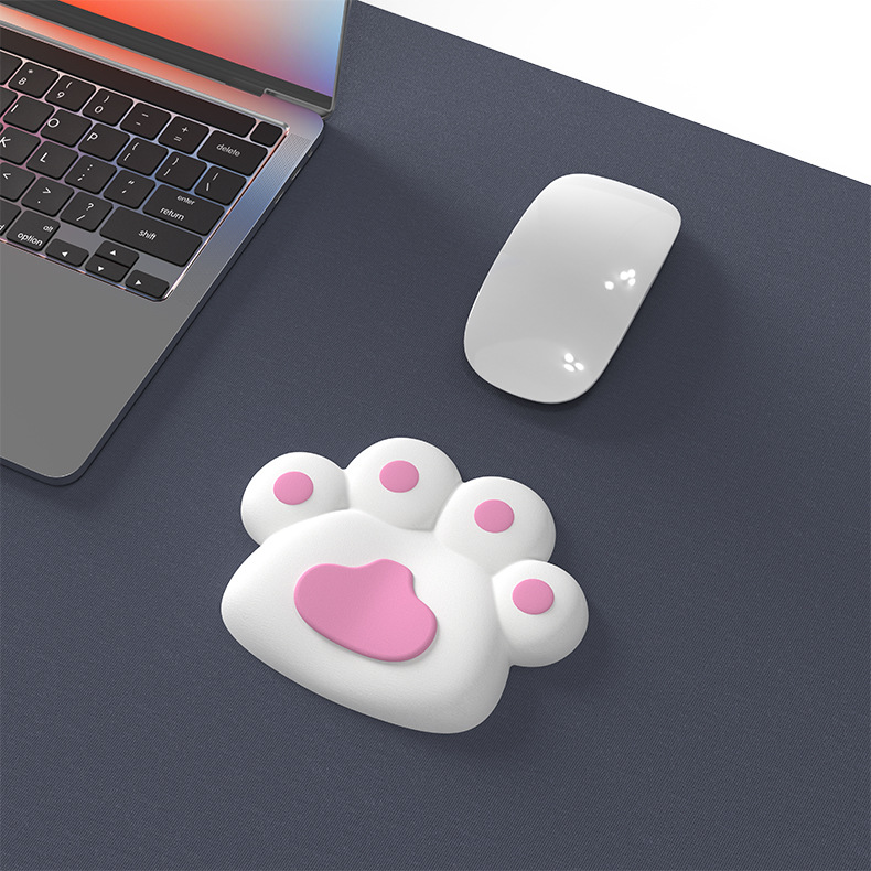 やわらかでプニプニした触感がかわいい猫の足裏タイプのリストレストで、手首の疲れ軽減と癒しを与えてくれます。