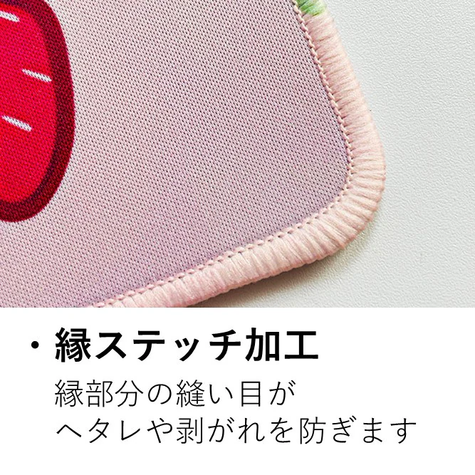 ヘタレや剥がれを防ぐ縁ステッチ加工